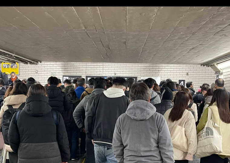 通勤難民がたくさんいるのでおそらくタクシーもつかまらないでしょう💦